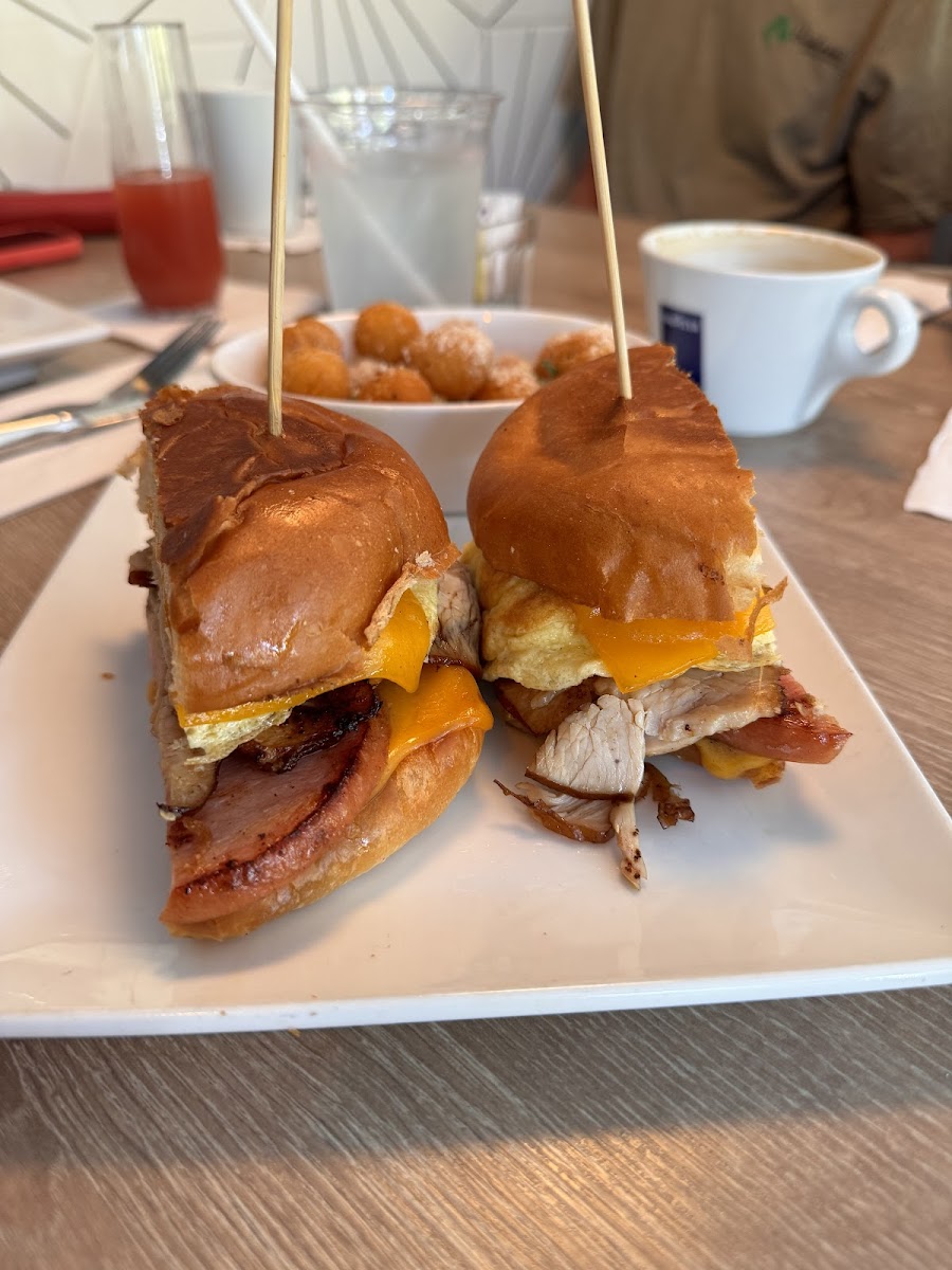 The menu leans heavily into brunch classics with some elevated twists. Dishes like the Smoked Brisket Hash and Lobster Scramble speak to a willingness to blend familiar comfort with richer, more indulgent flavors — all offered at a thoughtful price point typical for a serious brunch-focused eatery. Sandwiches like the Wagyu Burger and Smoked Brisket Melt emphasize hearty, satisfying options that pair well with the relaxed setting.
