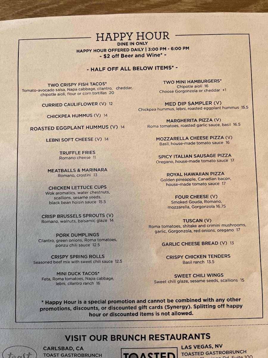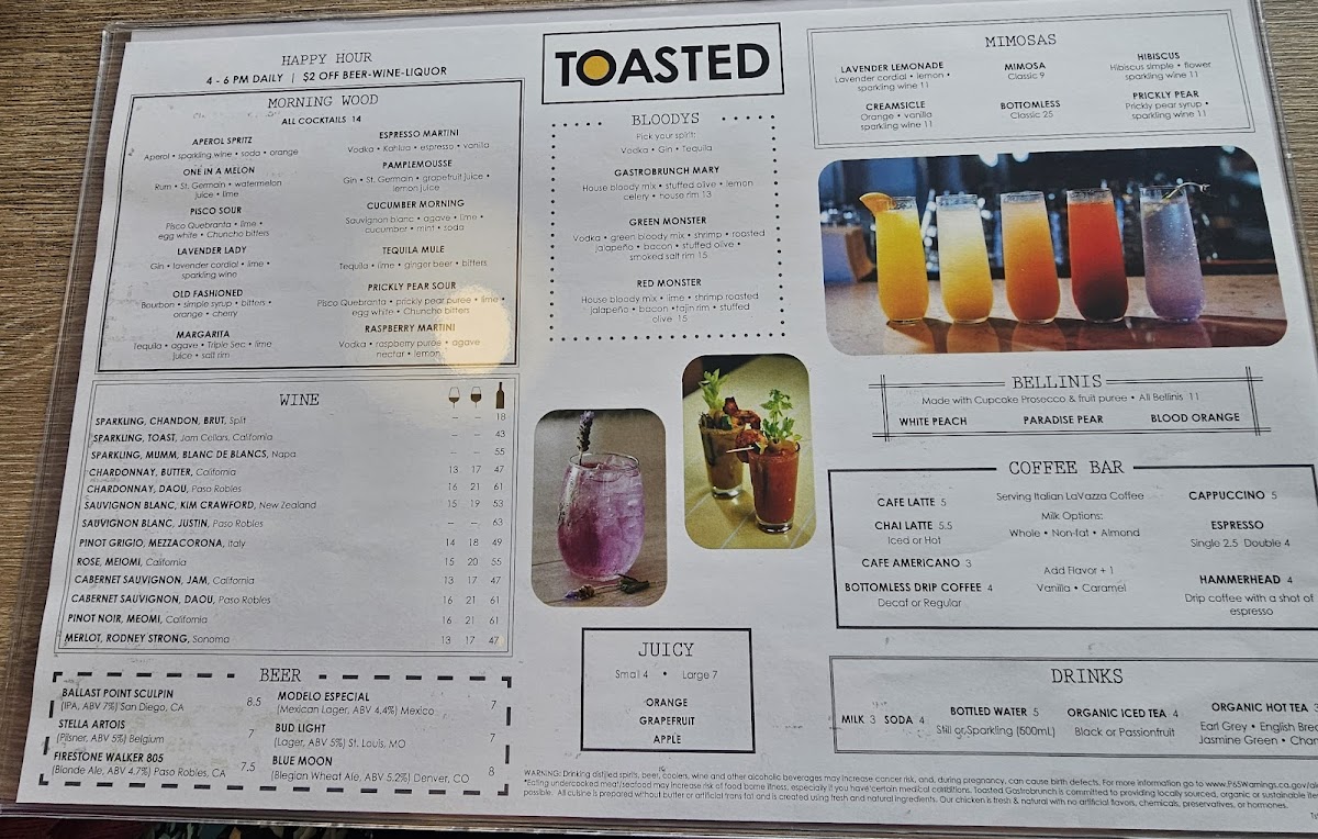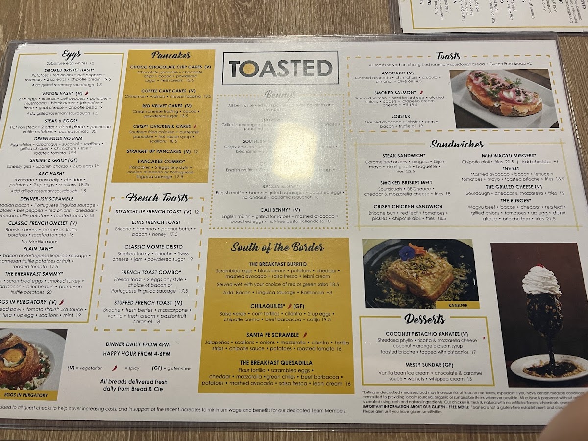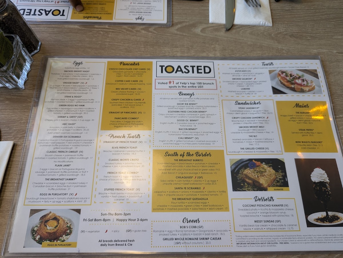 Toasted Gastrobrunch - La Mesa Menu